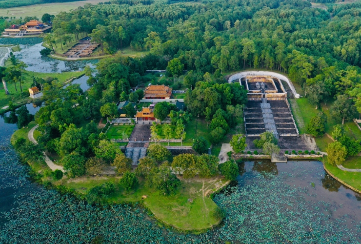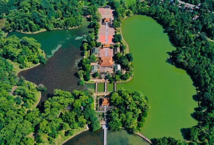 Lăng Minh Mạng là một trong những lăng tẩm Huế uy nghiêm và chuẩn mực nhất, được xây dựng trên diện tích khoảng 18ha với hơn 40 công trình lớn nhỏ. Tất cả đều được sắp xếp đối xứng trên trục thần đạo dài gần 700m, thể hiện rõ tư tưởng Nho giáo, sự khuôn thước và uy nghi của triều Nguyễn. Điểm nổi bật là kiến trúc không tách rời thiên nhiên, mà hòa quyện cùng hồ sen thơm ngát, rừng thông xanh mát và dòng sông Hương uốn lượn.